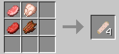 For example, the ingredient raw meats beef, pork, and chicken have a total cooked food value of 11 = 4 + 4 + 3 (rotten flesh adds 4 temporarily), but crafting them with rotten flesh and cooking them produces 4 COOKED FRANKS with a total food value of 12 = 3 + 3 + 3 + 3.